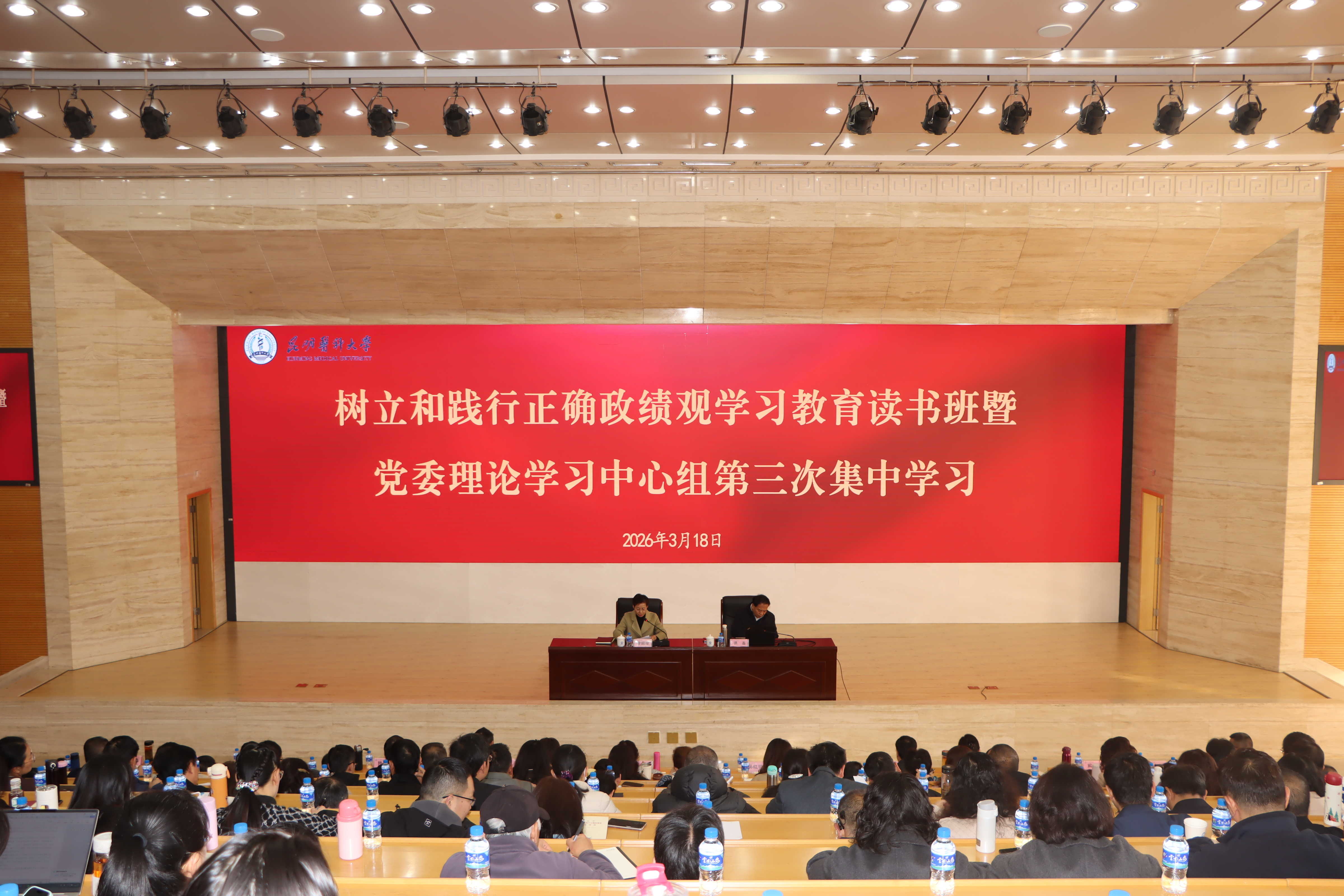 3月17日至19日,beat365中文官方网站树立和践行正确政绩观学习教育第一期读书班暨2026年党委理论学习中心组第三次集中学习在呈贡校区举办。本次专题读书班通过集中自学、专题辅导、交流研讨等形式,深入学习贯彻习近平新时代中国特色社会主义思想,深入学习领会习近平总书记关于树立和践行正确政绩观学习教育的重要讲话重要指示精神、学习习近平总书记考察云南重要讲话重要指示精神、学习《习近平关于树立和践行正确政绩观论述摘编》有关内容,引导党员干部树立和践行正确政绩观,以优良作风凝心聚力、干事创业,把学习教育成果转化为推动高质量发展成效,为推动学校“十五五”开好局起好步打牢思想基础、凝聚强大合力。