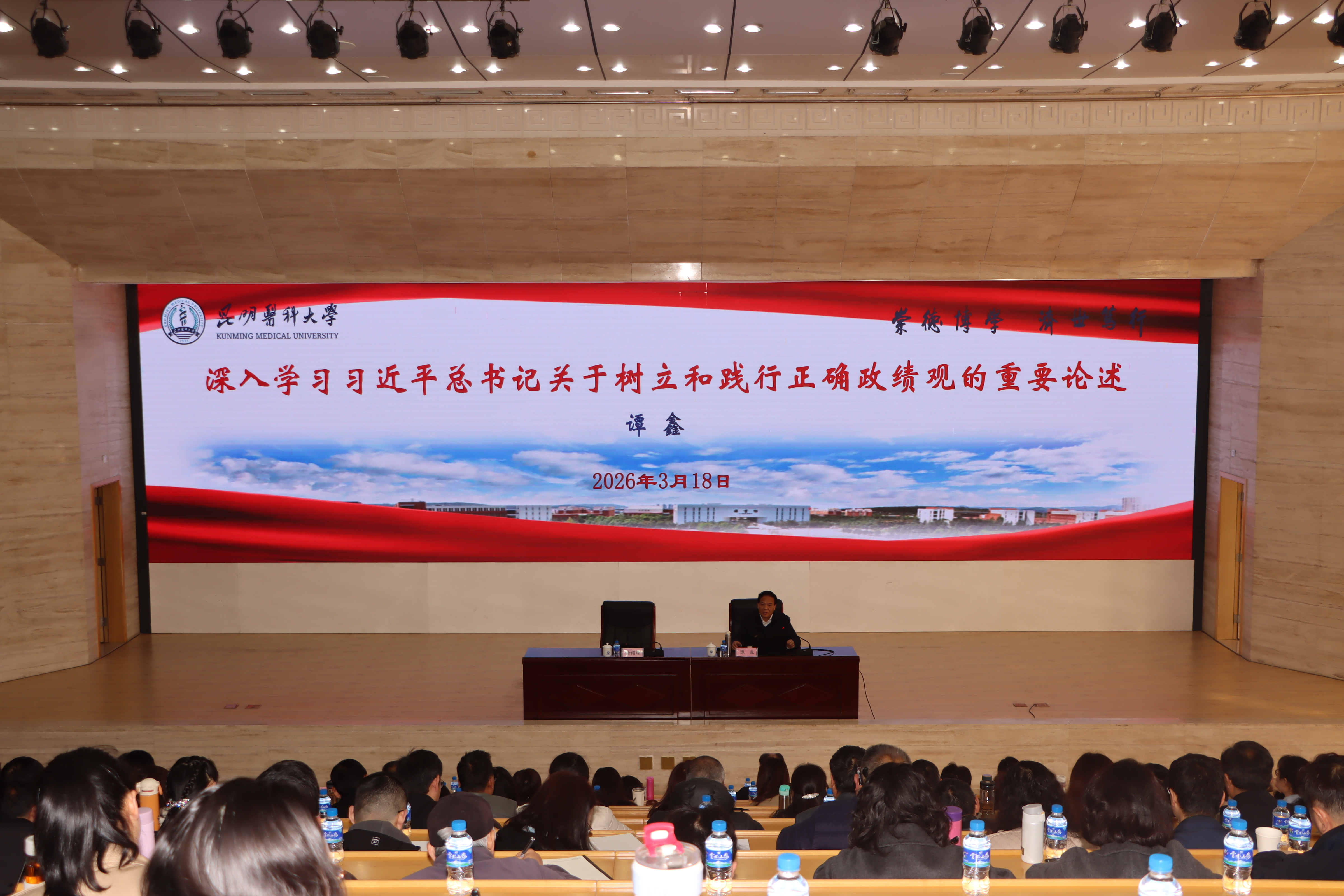 3月18日,学校邀请中共云南省委党校(云南行政学院)马克思主义学院院长谭鑫教授以《深入学习习近平总书记关于树立和践行正确政绩观的重要论述》为题作专题辅导,他从“习近平总书记关于正确政绩观的内涵”“中国共产党人正确政绩观的根本特征”“领导干部树立和践行正确政绩观的实践要求”3个方面,通过丰富的案例进行了主题鲜明、重点突出、内容丰富、分析透彻的讲授,同时,结合学校人才培养、医疗服务、科研创新、管理服务等实际情况为学校高质量开展学习教育提供了重要指导。