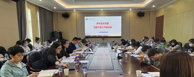 4月24日下午,研究生处党委党团干部工作座谈会在学术交流中心306会议室召开,研究生处党委书记杨兵兵、研究生处教师党支部及团委相关教师,以及非直属研究生培养单位研究生党支部书记、支委和团支部书记40余人参加座谈会。本次座谈会由研究生处党委副书记张媛主持。