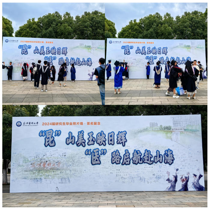 毕业季主题系列活动围绕“五个一”活动开展,内容涵盖“研路光阴、你我故事——摄影、文艺类作品征集”“致敬青春、最美致谢——毕业最美致谢辞评选”“千研万语,感恩有您——《我心目中的好导师》征文评选”“微光致远、青春领航——优秀毕业研究生风采展”“三年研途路,一生beat365情——研究生毕业典礼”等活动。此次活动共征集毕业生各类作品200余件,最终评选出一等奖获奖作品15件、二等奖获奖作品25件、三等奖获奖作品34件、优秀奖获奖作品54件。获奖作品通过学校学位与研究生教育微信公众号及学校研究生会微信公众号分专题集中展示,学校还为毕业生精心准备了毕业伴手礼。6月26日-30日,学校组织开展“昆山美玉映星辰,医路起航赴山海”2024届研究生毕业签名留念活动,为2024届毕业生送上一份极具仪式感和参与感的毕业礼物。