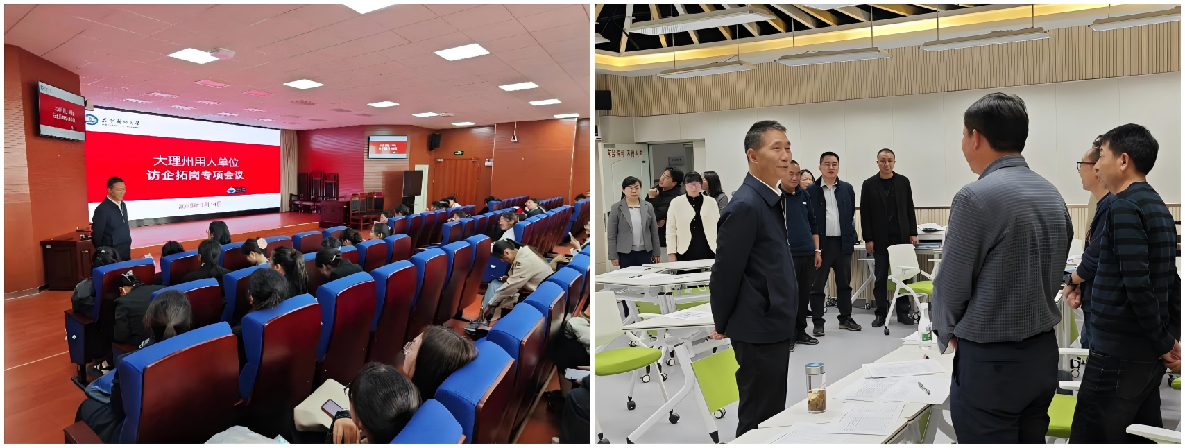 5月29日至30日,李利华一行及4名学生代表前往大理白族自治州开展“组团式”访企拓岗活动,先后实地走访大理大学第一附属医院和大理白族自治州人民医院,与大理白族自治州人力资源和社会保障局、州委组织部、州卫生健康委员会、州教育体育局、大理大学第一附属医院、州人民医院、大理护理职业学院、校友代表举行访企拓岗交流座谈会,就毕业生就业现状、用人单位人才需求、校地合作具体方向等有关事宜展开讨论。学校优秀校友代表及毕业生代表一同参会并发言。