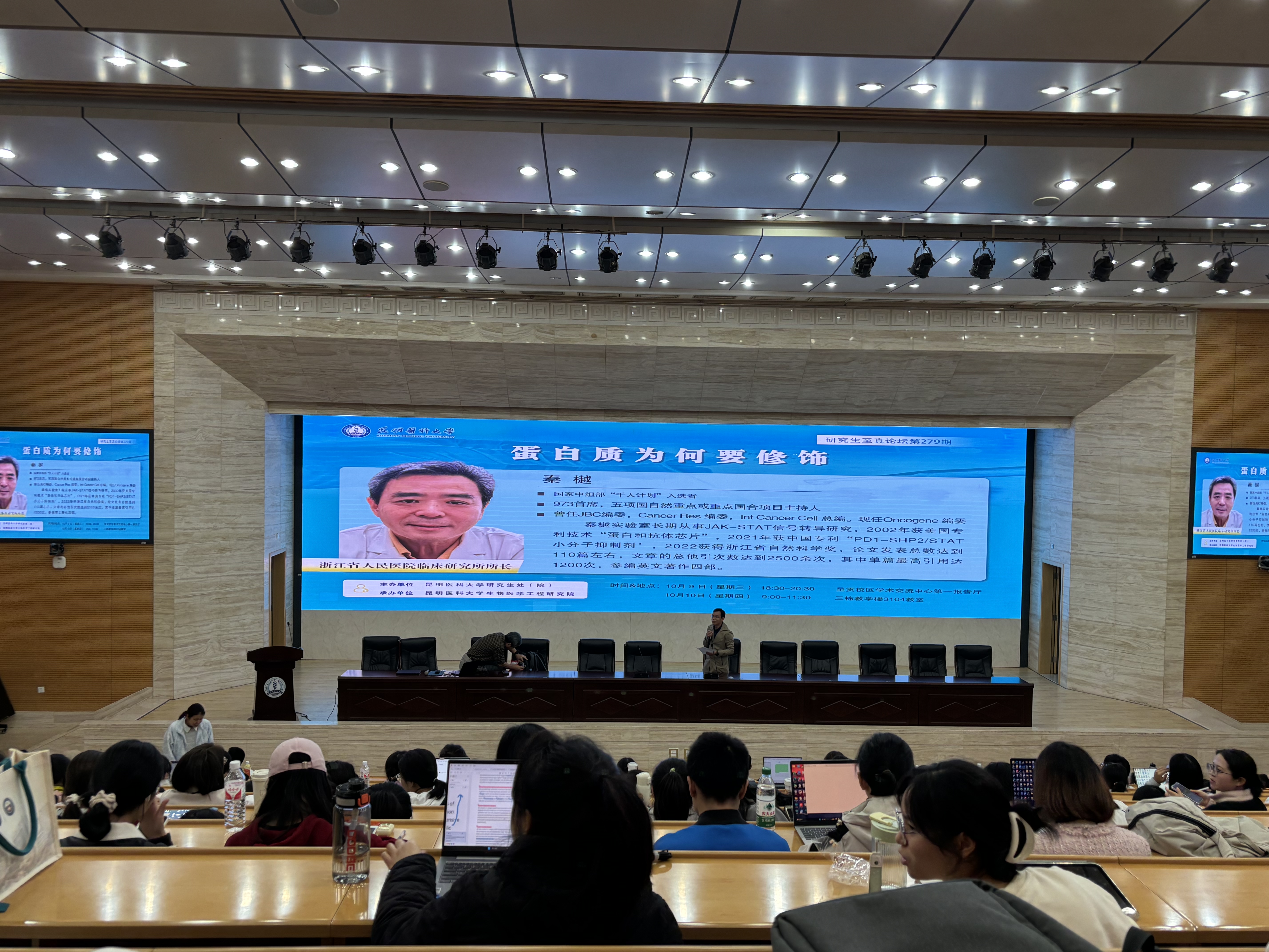 10月9日-10日,由beat365中文官方网站研究生院主办、生物医学工程研究院承办的第279期研究生至真论坛《蛋白质为何要修饰》在呈贡校区学术交流中心第一报告厅成功举办。全校博士、硕士研究生200余人聆听讲座。