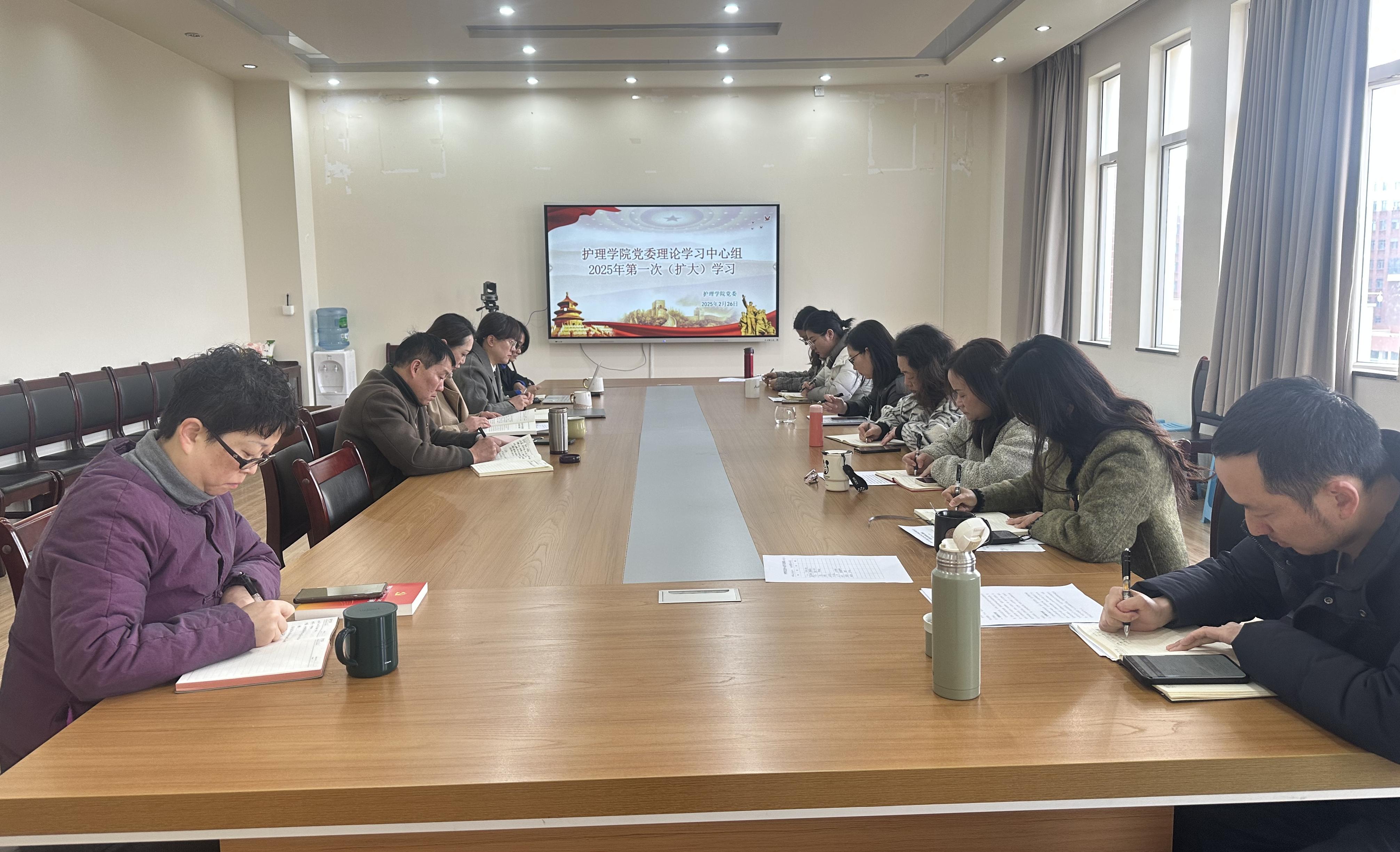 2025年2月26日,护理学院党委理论学习中心组开展第一次(扩大)学习。会议集中学习了习近平总书记在党的二十届中央纪委四次全会上的重要讲话精神、省委书记王宁在省纪委十一届五次全会上的重要讲话精神,以及党章和《中国共产党纪律处分条例》等内容。学院党委书记杨国华主持并领学相关内容。