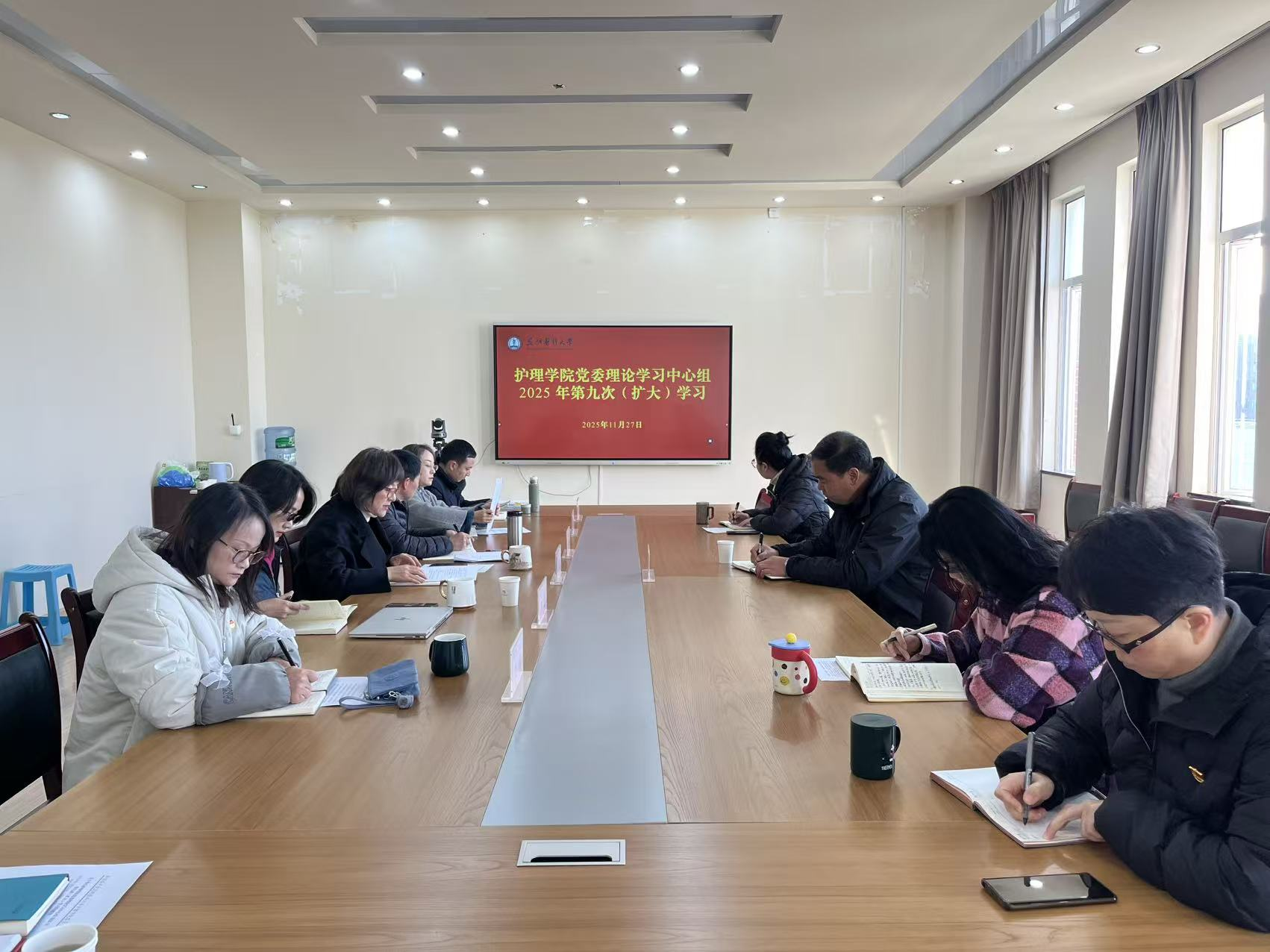 2025年11月27日,护理学院党委理论学习中心组开展第九次(扩大)学习。会议集中学习了:习近平总书记在广东、海南考察时的重要讲话精神、《中国共产党第二十届中央委员会第四次全体会议公报》《中共中央关于制定国民经济和社会发展第十五个五年规划的建议》、习近平总书记关于总体国家安全观的重要论述、习近平生态文明思想、习近平法治思想等内容。学院党委副书记、院长卢玉林主持并领学相关内容,beat365中文官方网站海源学院党委委员、学生工作处处长王敏列席。
