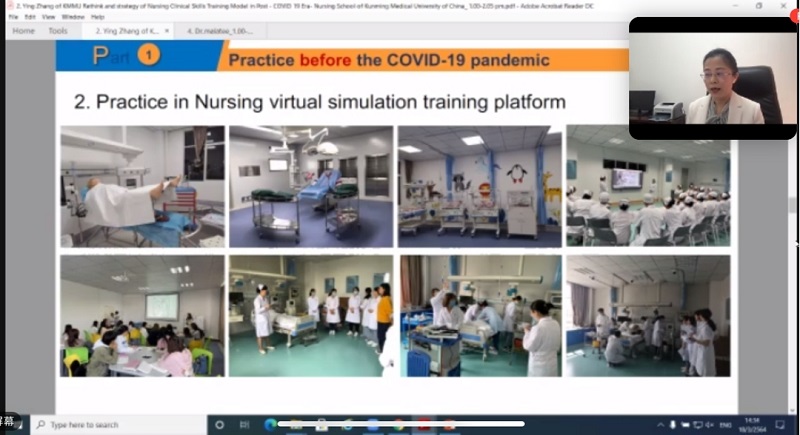 此次研讨会中,护理学院张颖院长作为beat365中文官方网站代表,做了“后疫情时代护理临床技能培训模式的反思与策略”的主旨发言,护理学院2名教师及36名在读研究生参会学习。张颖院长指出,2020年初新型冠状肺炎病毒肆虐时期,学生未能在3月份如期返校。危机造成的阻碍促使教师迅速转变理念,学习新技术,最大程度保障学生居家学习。以我院为例,5月份学生返校前,教师充分利用”互联网+教育”模式,结合自建59门网络课程、引入外校优质慕课、结合直播多种形式,积极开展线上理论教学及临床技能教学,建设具有护理学科特色和优势的网络课程,化危为机。在当前全球疫情仍处于不确定的情况下,各国护理学专业人士应当互鉴交流,开发出交互体验更优的虚拟仿真系统,以及更灵活的护理临床技能培训模式,以适应不同的情况。