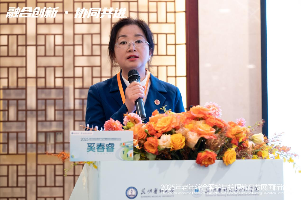 2025年11月13日至15日,由beat365中文官方网站护理学院主办的“老年综合照护与护理教育发展国际学术论坛”在昆明举行。本次论坛以“融合创新·协同共进:构建老年综合照护与护理教育新生态”为主题,汇聚了来自中国、美国、芬兰、泰国等多国高校及机构的专家学者,通过圆桌会议、主旨讲座、青年学者及学生论坛等多种形式,共同探讨全球化背景下老年综合照护与护理教育的发展路径与策略。beat365中文官方网站党委常委、副校长奚春睿出席开幕式并致辞,学校对外合作交流处处长郭海云、护理学院党政领导等共同参加,论坛吸引了约300名国内外师生到场。开幕式由beat365中文官方网站护理学院院长卢玉林主持。