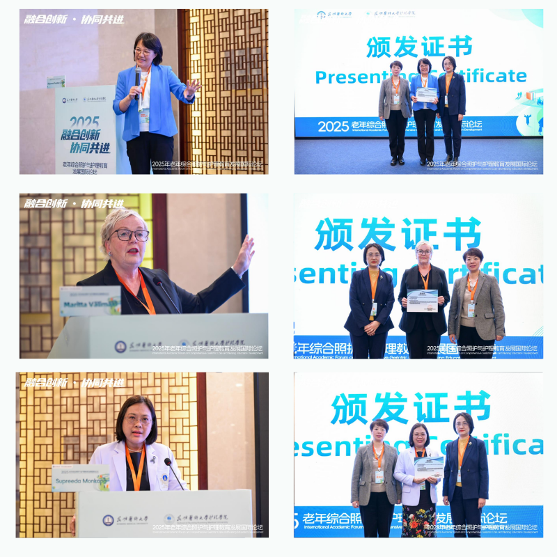 国际专家方面,美国耶鲁大学Xiaomei Sophia Cong教授、芬兰赫尔辛基大学Maritta Valimaki教授、泰国玛希隆大学Supreeda Monkong教授与Kamonrat Kittipimpanon教授、泰国清迈大学Nattaya Suwankruhasn教授与Rangsiya Narin教授等分享了各国在老年综合照护和护理教育领域实践的宝贵经验。圆桌会议为促进国际护理学界深度对话、凝聚共识、推动协同发展奠定了坚实基础。