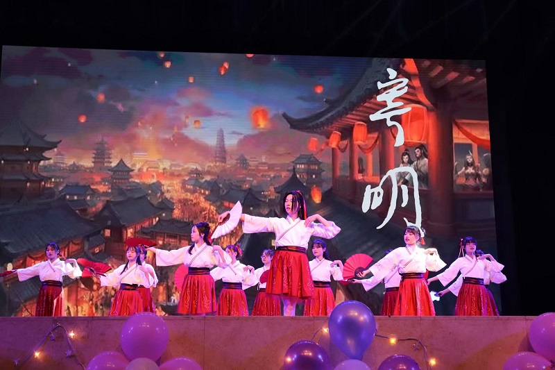 晚会伴随着开场舞拉开帷幕,调动了现场气氛,来自各班级的代表们为全场观众带来了18个精彩纷呈的节目。古典舞《缘起》《寄明月》,古风歌舞《繁花》,《汉服走秀》展现了典雅庄重的汉文化;民族舞《哈尼宝贝》、草裙舞《waka waka》使观众领略了不同民族和文化的魅力;瑜伽队柔韧有力的表演彰显着护理学院学子奋发向上的精神风貌;华丽的现代舞《How You Like That》《你要跳舞吗》等在灵动的舞姿中流露着同学们对新年新生活的憧憬;《国》朗诵慷慨激昂的诠释了beat365学子对国家的热爱;小品《乌龙快递》让观众们开怀一笑;《仰望星空》手语合唱抒发了beat365学子对美好生活的向往。