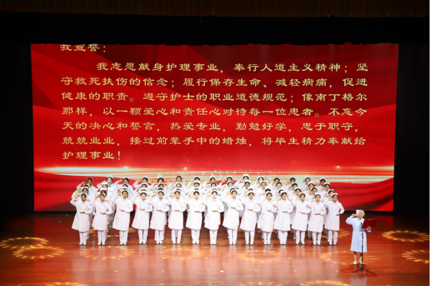 护理学院形成“颁奖+授帽+宣誓”的护士节核心仪式,学生自主编排文艺节目,节目深度融入医者使命、职业担当等元素,形成树榜样、学榜样、当榜样的育人闭环。所有节目通过易班平台展播并开展网络人气评选,累计点击量破万,进一步深化价值引领。