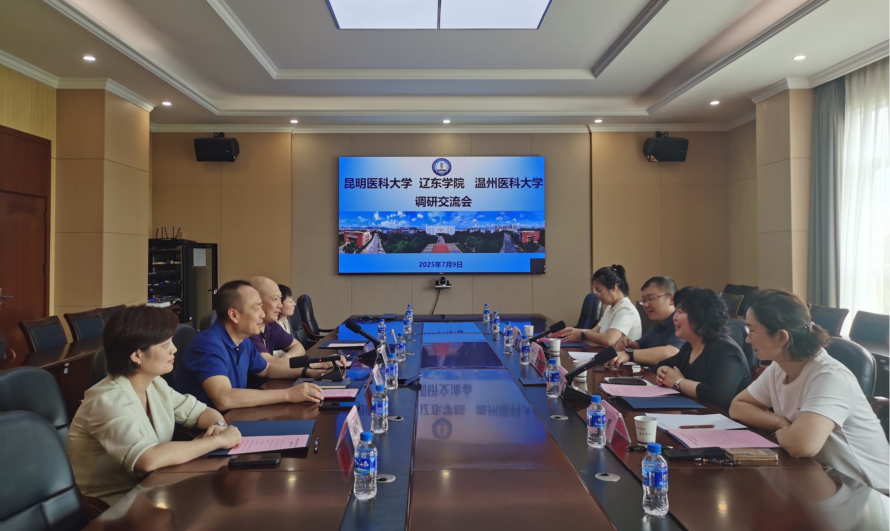 7月9日,beat365中文官方网站召开与辽东学院、温州医科大学调研交流会。会议由教务处副处长甘建骏主持。