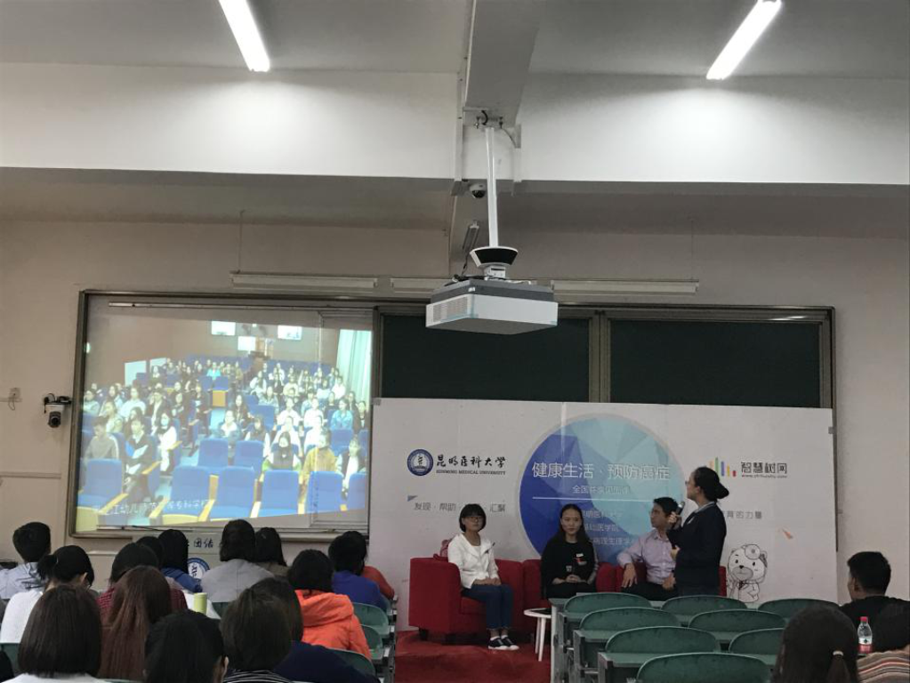 本次见面课在我校的邹英鹰副教授和徐若冰副教授的组织下,联合三位肿瘤专科骨干医生,共同为全国学生奉献了一场理论结合实际,与我们生活休戚相关,别开生面的直播见面课程。而在镜头的另一边,云南大学和黑龙江幼儿师范高等专科学校的学生参与到了课程的直播互动中,提出了很多有意义的问题,现场的三位主治医师也耐心的一一做出了解答。