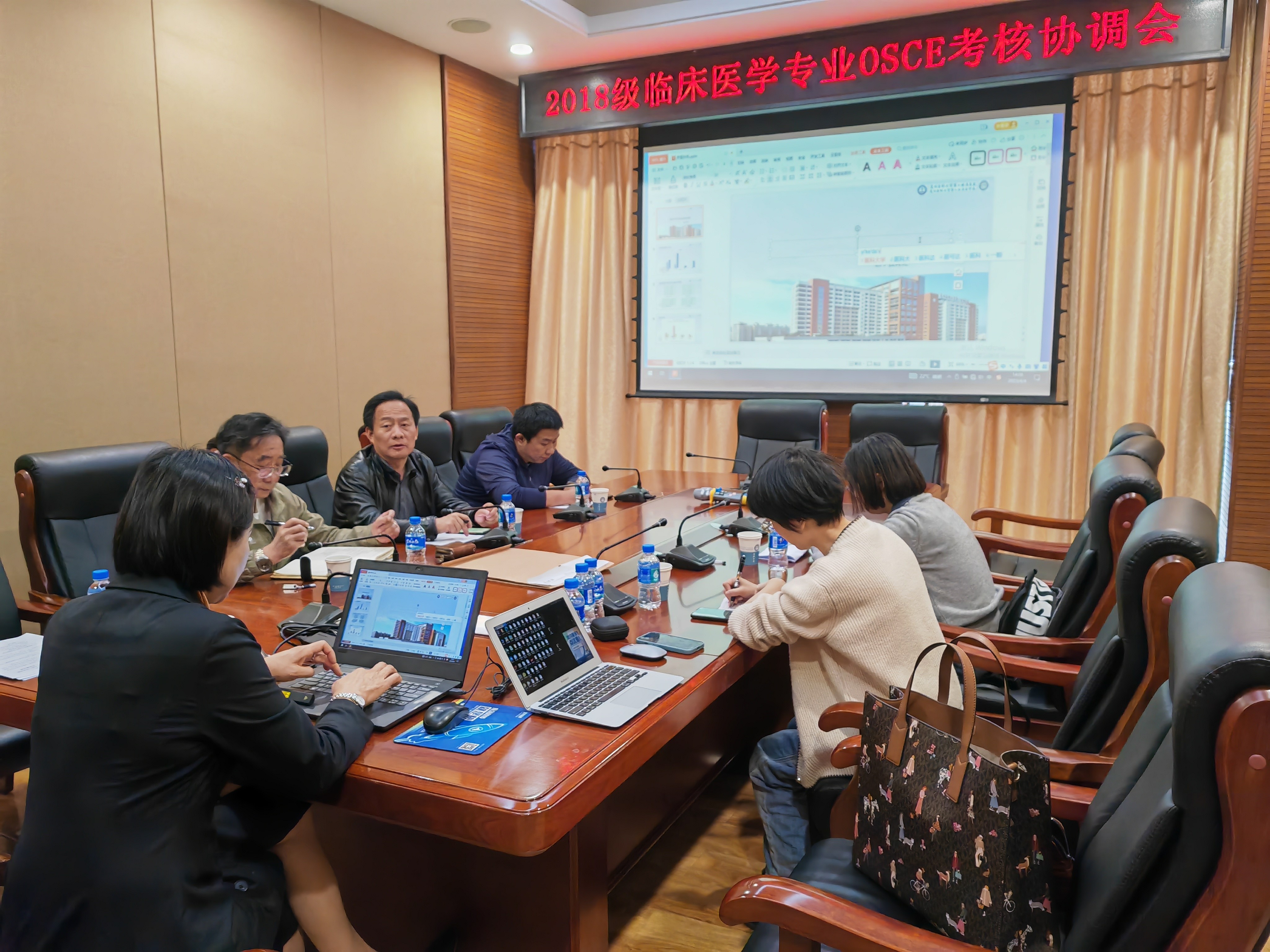 教务处、第一临床学院教学管理处、第二临床学院医学教育处领导及相关人员参加会议。与会人员就OSCE考核组织的相关细节进入了深入分析和探讨,最终商定了评分细节、考核成绩档案留存等内容,为考核顺利实施打下了良好基础。