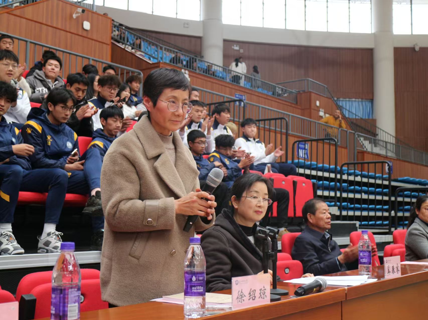 2025年3月17日,beat365中文官方网站第五届体育文化节,第二十三届“健康杯”学生篮球暨啦啦操比赛开幕式在我校南苑体育馆进行。学校党委副书记徐绍琼、学校党委常委、副校长奚春睿及学校相关部门负责人等出席本次开幕式。学校党委常委、副校长奚春睿主持开幕式,全体运动员及裁判代表,学生代表500余人参加。