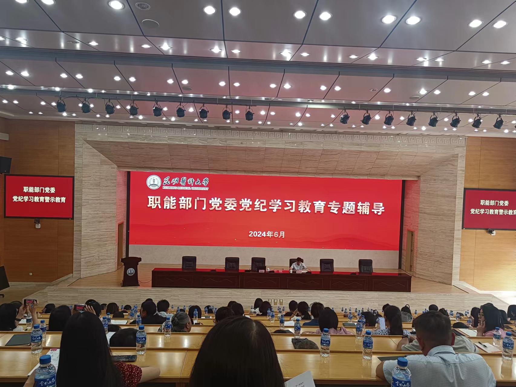 为扎实开展党纪学习教育,进一步强化教职工纪律规矩意识,6月13日下午,职能部门党委在呈贡校区学术交流中心第一报告厅组织开展党纪学习教育培训。本次培训由职能部门党委书记周铨主持,职能部门各单位教职工200余人参加。