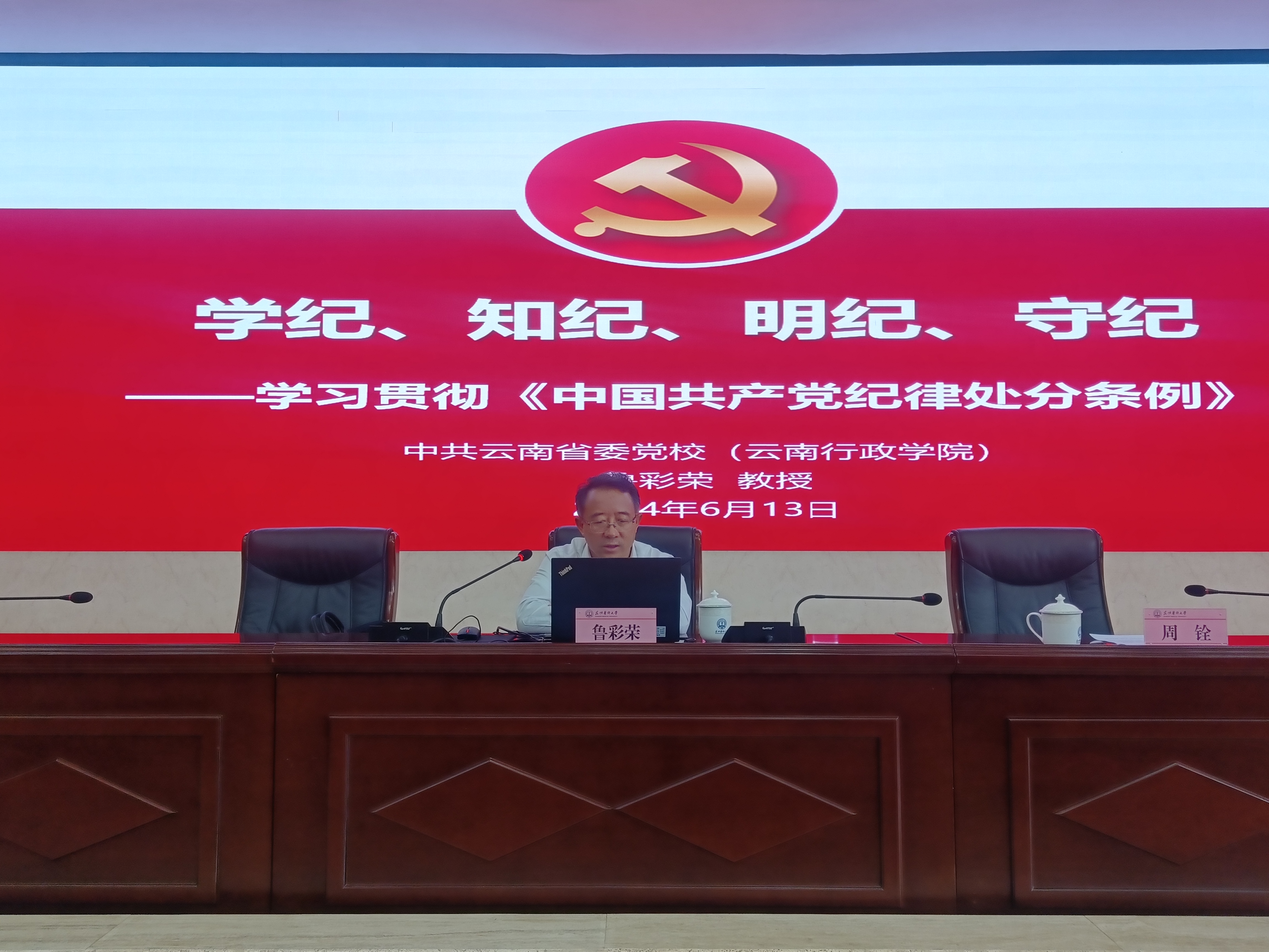 本次培训共有三项议程:一是学习习近平总书记关于全面加强党的纪律建设的重要论述;二是观看警示教育片;三是邀请云南省委党校鲁彩荣教授开展《学纪、知纪、明纪、守纪——学习贯彻<中国共产党纪律处分条例>》专题辅导。