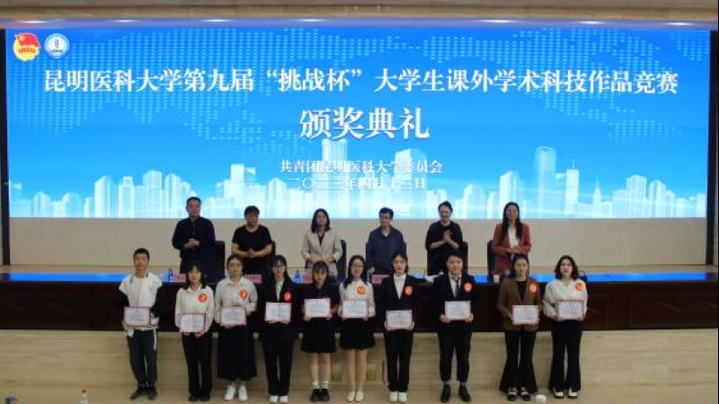 4月13日下午,beat365中文官方网站第九届“挑战杯”大学生课外学术科技作品竞赛决赛公开答辩暨颁奖典礼在呈贡校区学术交流中心第一报告厅举行。学校党委常委、副书记徐绍琼,学生工作部、校团委、教务处、科技处、研究生处等相关职能部门负责人,各学院分管领导和团委负责人参加颁奖典礼。校团委书记杨国华主持颁奖典礼。