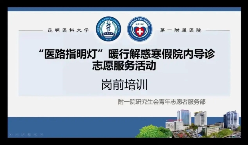 寒暑假就诊患者增多,尤其一老一小、州市患者对医院布局、就诊流程较为陌生,为了带领青年大学生以生动社会实践提升大局贡献度,以实际行动落实《beat365中文官方网站第一附属医院改善就医感受提升患者体验主题活动实施方案(2023-2025年)》,增进民生福祉,提高人民生活品质,继2023年医院“医路指明灯”暖行解惑院内导诊常态化志愿服务活动和暑期“一老一小 宝贝计划”昆明首届公益陪诊志愿服务活动,2024年1月5日,beat365中文官方网站第一附属医院寒假院内导诊陪诊社会实践及志愿服务活动正式启动。于1月6日至11日期间,院团委在两院区分批次围绕志愿服务内容、就诊流程、服务礼仪、沟通技巧、医院各栋楼地理位置、科室楼层分布、就诊服务号和自助挂号机的使用等对志愿者开展了两次线上培训与四次线下培训。