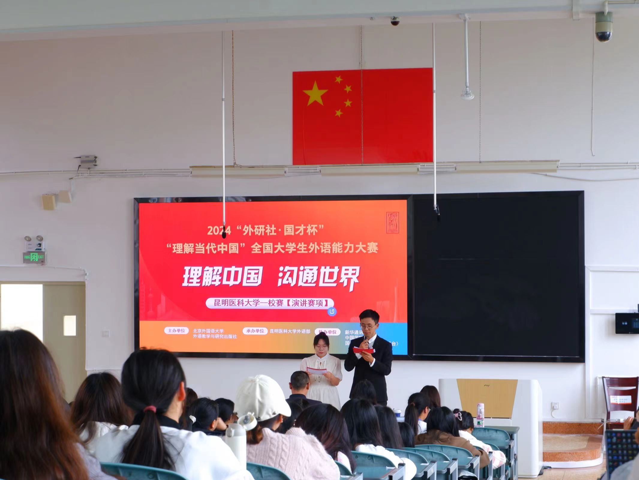 2024年10月11日下午,外语部举办了2024年“外研社·国才杯”全国大学生外语能力大赛演讲校赛。来自不同学院共30位选手参赛,本次比赛邀请学生处副处长徐卫琼,外语部副主任吴坚,以及肖燕、林滢静雅、陈汉白、李昆秀、朱敏思等外语部教师作为评委,对参赛选手进行指导与点评。本次大赛旨在让同学们锻炼学生们英语表达能力的同时,讲好中国故事,做好中外沟通桥梁。