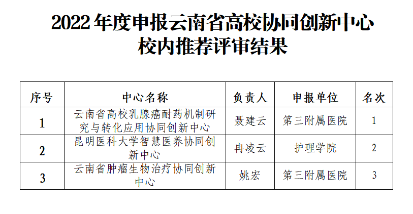 2022年度申报云南省高校协同创新中心校内推荐评审结果公示